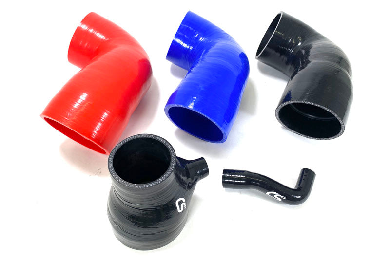 Choose your choice of silicone colors for your new Turbo Inlet Pipe. The front main silicone has the option of Red, Blue or Black colors (the other smaller couplers will be black only and are pretty hidden in the back of the engine bay). You decide if you want to be stealthy or loud!